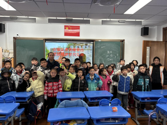 区投促办退休干部袁庆走进虹口区第四中心小学办班点,以“北外滩的红色记忆”为主题,带领孩子们一同回望那段峥嵘岁月。从汇山码头,一群怀揣救国理想的青年学子远赴法国勤工俭学,探寻真理的热血征程;到革命先烈王孝和,面对敌人的酷刑与威逼利诱,始终坚贞不屈、英勇就义的革命气节;再到解放战争时期,百老汇大厦、四川路桥旁,革命将士们浴血奋战的壮烈场景,袁庆娓娓道来、声情并茂,一个个鲜活的英雄形象、一段段刻骨铭心的红色往事,让孩子们沉浸式感受信仰的力量,在聆听中传承红色基因,厚植热爱家乡、热爱祖国的真挚情感。