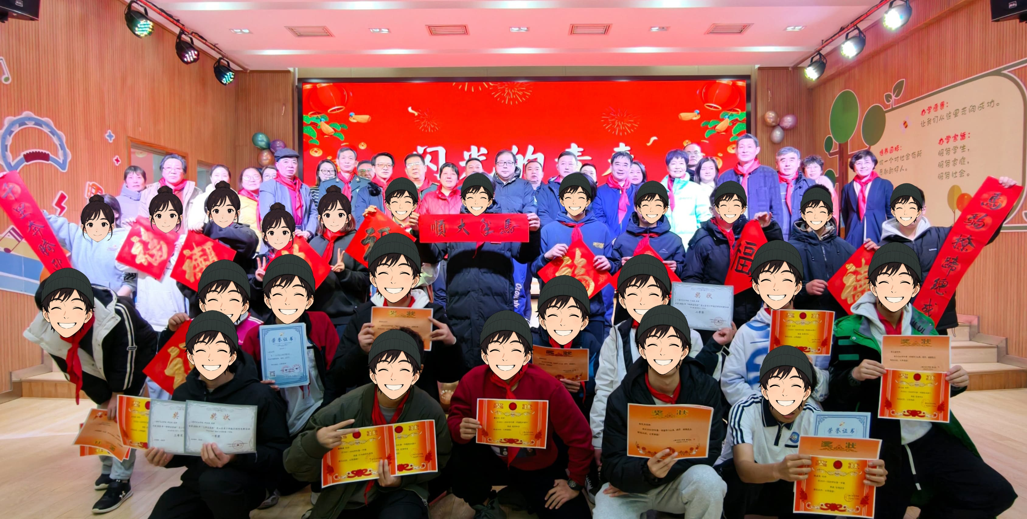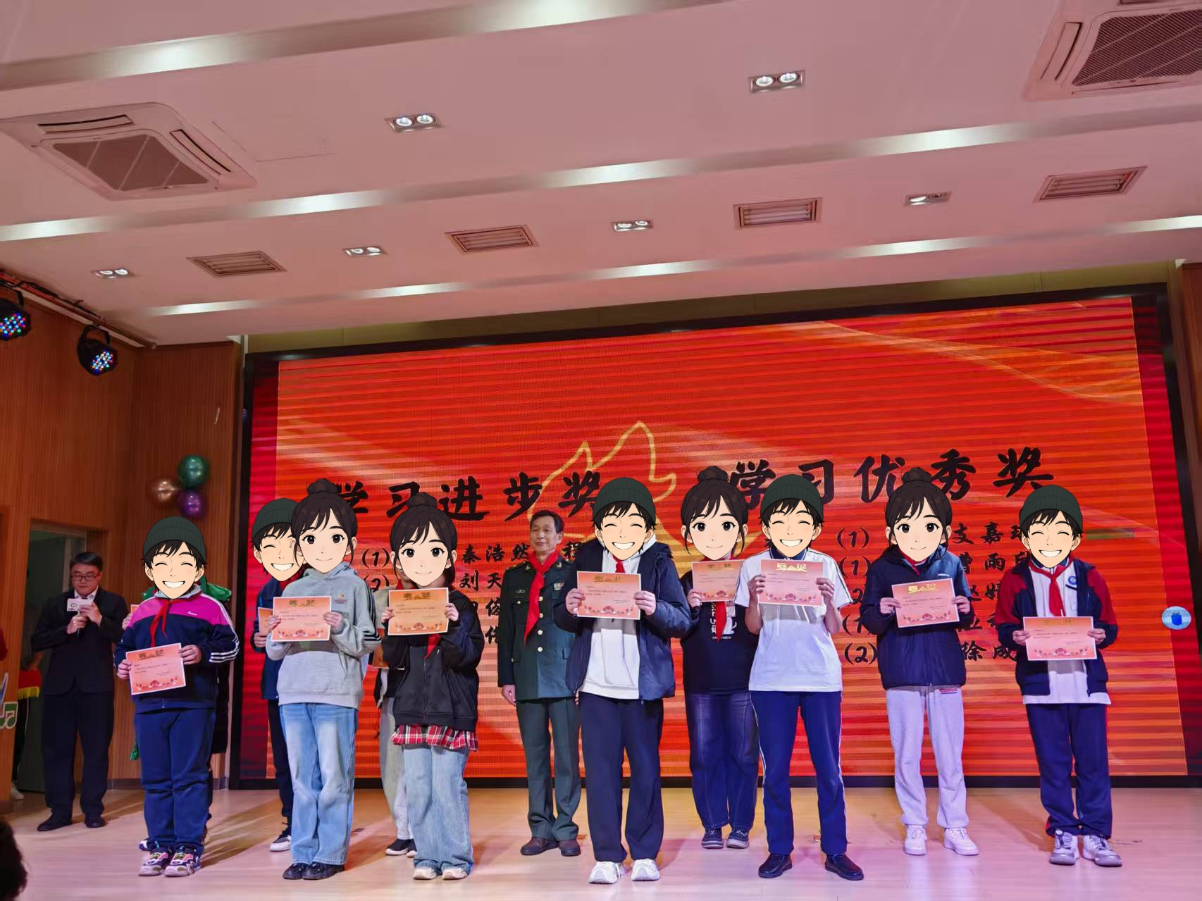 “美育之光”版块则弥漫着传统文化的馥郁馨香。优雅的茶艺表演展示了中国茶文化的精妙技艺与宁静雅趣,精美的年宵花艺带来了新春的喜庆与生机,丙烯凝胶版画日历创作则体现了“时光印迹”的艺术巧思。退休军人代表为获得“学习优秀(进步)”“行规优秀(进步)”荣誉的学生颁奖,希望大家珍惜时光、勤学笃行,持续养成良好习惯,在新的一年中再接再厉,更上一层楼。