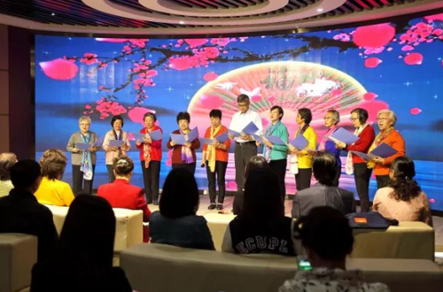 诵读会首先是由区老干部大学古文班学员带来的《春江花月夜》,他们精神矍铄、深情饱满的朗诵为大家描绘了一幅人生的良辰美景。